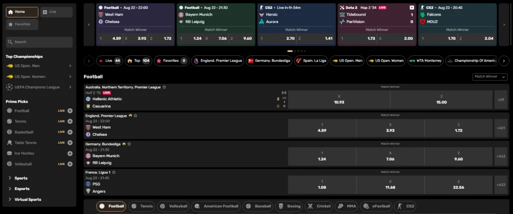 - Hatalmas választék: Több mint 100 000 esemény a sportok és esportok széles skáláján.